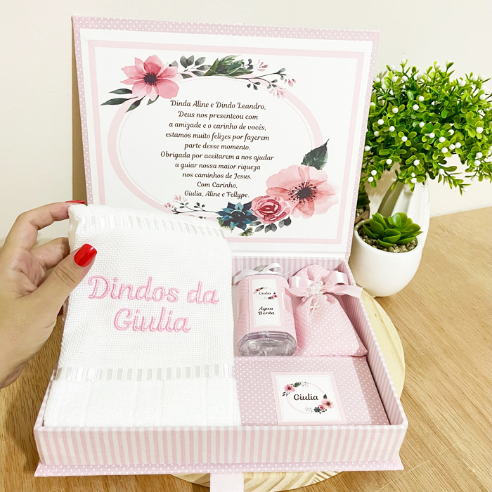 Uma caixa personalizada para os padrinhos de batismo é uma escolha elegante e sofisticada. Personalize a caixa com o nome dos padrinhos o que tornará a lembrança ainda mais especial.